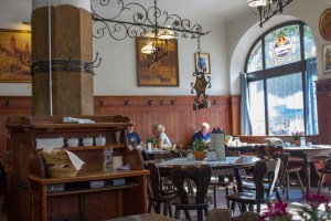 Schneider’ in Weisses Bräuhaus yani biraevlerinden Munih’ de 2 adet var, bir tane de Kelheim’de bira üretim yerine yakın olanı var. Bizim misafiri olduğumuz bira evi Marianplatz‘ ın hemen yakınında Tal sokağının üstündeki ve en eski/meşhur olanı. Mekana girdiğinizde mekanın otantik havası karşılıyor sizi. Genelde çok kalabalık olduğunu duymuştuk fakat bizim şansımıza o kadar da kalabalık değildi içerisi. Kalabalık olduğu durumlarda masalarda başkaları ile oturabiliyorsunuz 🙂